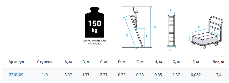 - Модельный ряд от 7 до 24 ступеней с рабочей высотой от 2,9 до 7,1 м